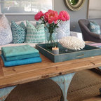 Another good idea for a coffee table--upholstered so that we can use it as an ottoman.