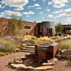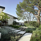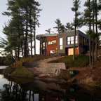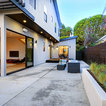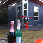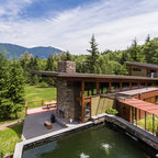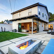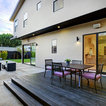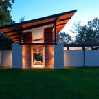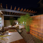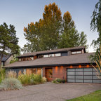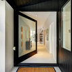 Relocating the garage allowed for a purposeful and private rear yard. The chain drain implies a column and reinforces the entry. Black stained cedar provides additional contrast.