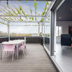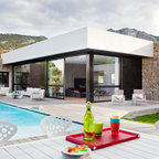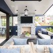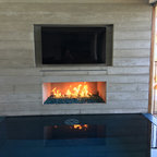 Sliding doors. D: not mirrored Fireplace stone. D: outside?