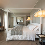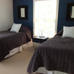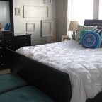 Master bedroom with painted wall "headboard"