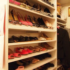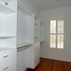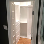 Drawers and open shelves for Mike’s closet, shoe shelves in corner