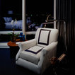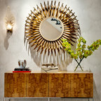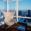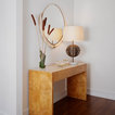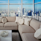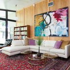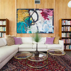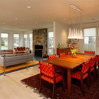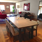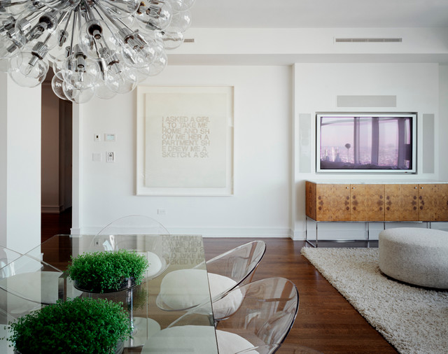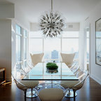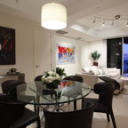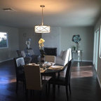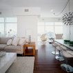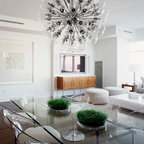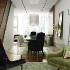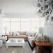 Colour scheme? Overall style? Glass dining table too hazardous for children? ANA&RUI - Yes, no way to have a glass dining table. Do not like the chandelier also. Like the carpet although and the center table (as a pouf). Color scheme - too white.
