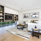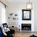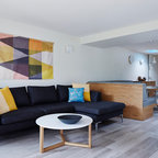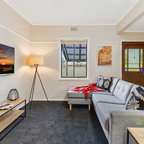 3. Maximise spaceCorners can end up as voids and dead zones, so make sure you are creating a functional space here, especially if you’re living in a small apartment. A recessed wall has been put to good use in this corner, with overhead open shelves and a petite chair. A great spot for guitar practise!Browse more mid-century living rooms