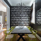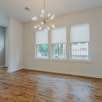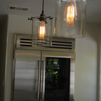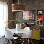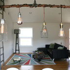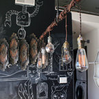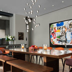 Modern dining area with Edison bulb chandelier