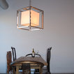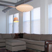 This warm, sleek, masculine space abuts and eclectic dining area with asian antique table and chairs and living space with oversized windows and large sectional sofa.