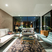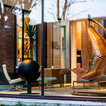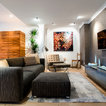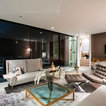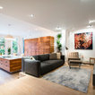 NW3 Interiors mini showroom with Knoll AA sofas, Barcelona chair & footstool, Bertoia chair, Florence Knoll credenzas, Krusin coffee table, Risom lounge chair, The Rug Company IKAT rug.