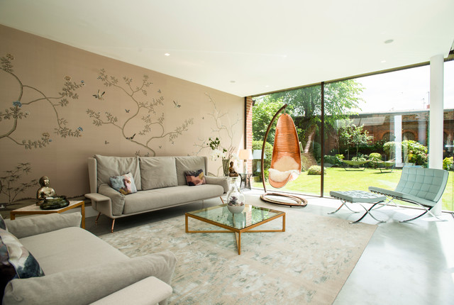 Luxury family living designed by Carly Madhvani of NW3 Interiors. All of the furniture, art and rugs were hand-picked to create a warm and inviting space for her own family. using a mix of wood, leather, marble and metalics.