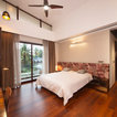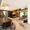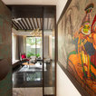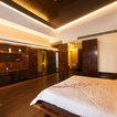 Soft and soothing colors are used to create a luxurious feel. Feature wall creating a focal point inside the space, while the marble adds to the natural feel to the setting.
