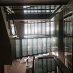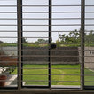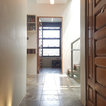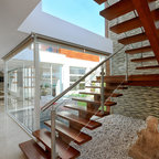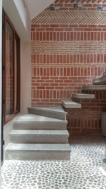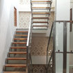 Left side of staircase coming out of wall to give space (and view to garden)