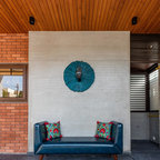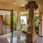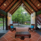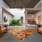 4. Location: GoaFirm: Architecture + Design Ankit PrahudessaiA modern-meets-rustic interpretation of the traditional courtyard, this space is stunning in its mix of brightly patterned cement tiles, a frangipani tree set in a granite bed, and a tree trunk that serves as a seat.Tour the house here
