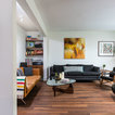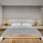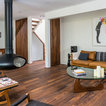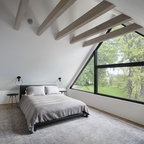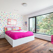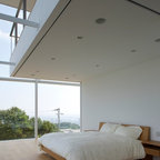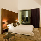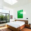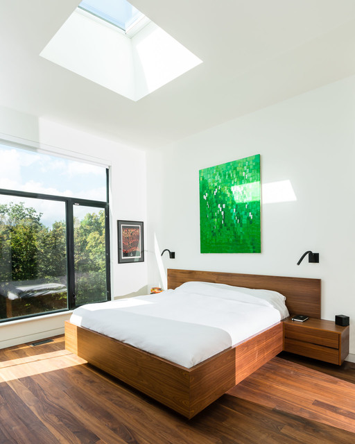 Principal Bedroom with walnut bed & floor. Photography by Robert Holowka.