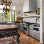 darker gray concrete works with cream and wood and black cabinets. 3