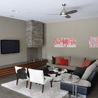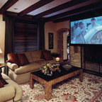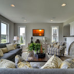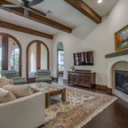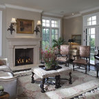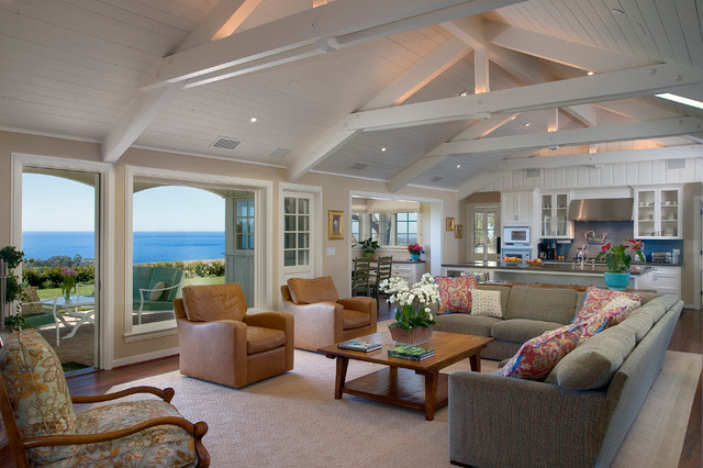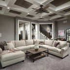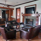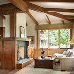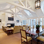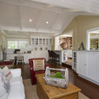 The open great room of this Colonial Ranch style home offers a relaxed comfort. Whether it be entertaining or daily family life this room is the hub of all activity. Photographer: Jim Bartsch