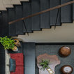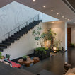 Opposite the living room is a sunken pebbled courtyard that has been designed with an additional seating zone. “These pockets of seating allow people more freedom to use the space as per their choice,” Shah says.