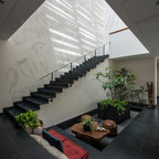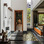 2. Location: SuratFirm: Studio LagomA sunken pebbled atrium in this Surat house, has been designed as an additional seating zone. Furnished with casual seating and a fresco-ed wall as a background, it’s a welcome change from the more formal living room.See more images of this home here