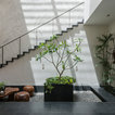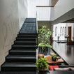 10. Set against a modern staircase design is a space that sings of Indian traditions … who wouldn’t be at home here? Studio Lagom have created a courtyard-inspired area accentuated with a tree – pointing to the age-old practice of Indian homes sporting an inner atrium with a tree for worship. Right next to it is a wooden column of the sort usually seen in old mansions or palaces. The wall along the very contemporary stairs displays intricate traditional drawings of elephants and trees.