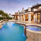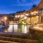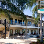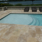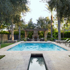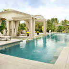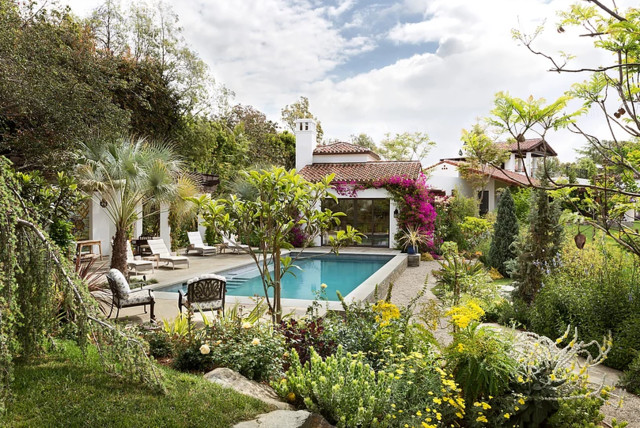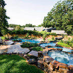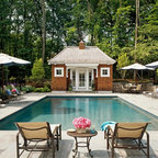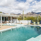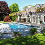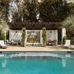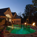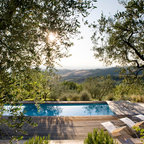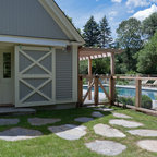 The pool and terrace are tucked within the landscape, elevated above the Lower Pond.