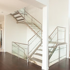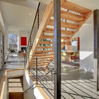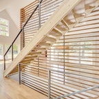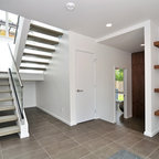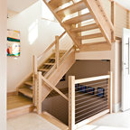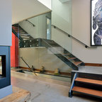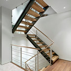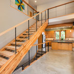 The stairs (the open concept, color, the wiring), the flooring, the wall lighting....very contemporary modern!