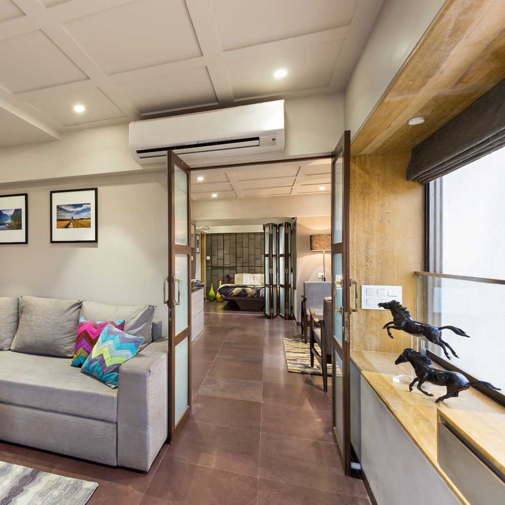 Another unifying characteristic is the minimal lattice-patterned white false ceiling made from gypsum boards. Simple...