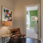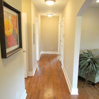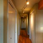 This looks like ambiant lighting, becuase the light fictures lite up the entire hallway.