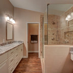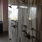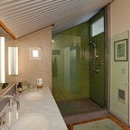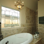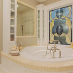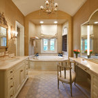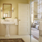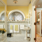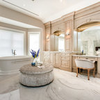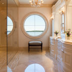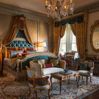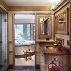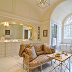 This brick and stone residence on a large estate property is an American version of the English country house, and it pays homage to the work of Harrie T. Lindeberg, Edwin Lutyens and John Russell Pope, all practitioners of an elegant country style rooted in classicism. Features include bricks handmade in Maryland, a limestone entry and a library with coffered ceiling and stone floors. The interiors balance formal English rooms with family rooms in a more relaxed Arts and Crafts style.