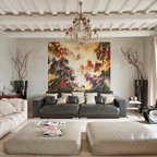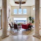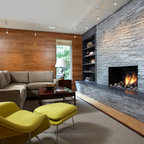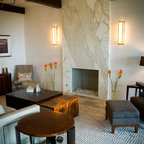 1. Architectural featureA central element can help you position your furniture in a room. Notice how the furniture in this space revolves around the fireplace. The stone surround also sets the colour tone for the sofa, chairs and drapes. Getting the size of the architectural element right in the room is vital. If it’s too big, it can look and feel uncomfortable. If it’s too small, your furniture will become the focal point, taking away from the main feature.
