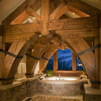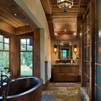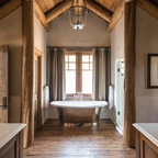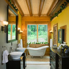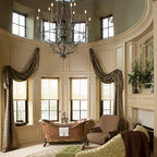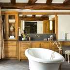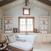 Great cabinetry idea for a stand alone tub. I especially like the idea of a narrow shelf behind the tub.