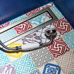 La combinación de color de la arpillera con el blanco y el gris