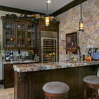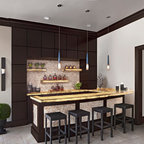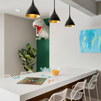 The architecture, the simple color palette with pop of animal print, the hanging light fixtures