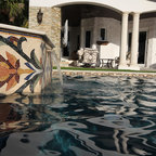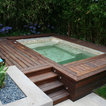 This Bradford Spa which are made with stainless steel and tile inlay. The inside dimensions of this tub are 12-ft by 8-ft and 14-ft 8-in x 9.5-ft outside dimension.