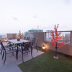 Bespoke arrangementIt doesn’t take a big budget to make an impression, says this Hyderabad balcony by Moriq. The open passage features a handful of elements. The army of tiny wall-climbing figurines form an accent on the right wall that matches the black railing in tone and simplicity. The bespoke furniture creates a laid-back, unfussy zone and is a fitting complement to the imposing checkerboard ceiling. Read more:What to Do With the Balcony?8 Balcony Designs for Urban HomesTell us:Which balcony did you like most? And let us know your suggestions on how to decorate balconies. Tell us in Comments below.