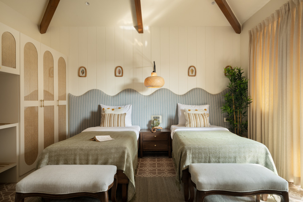 This bedroom draws inspiration from the waves of beaches and water element from Goa's waterbodies.