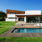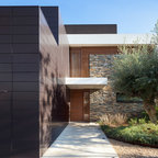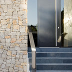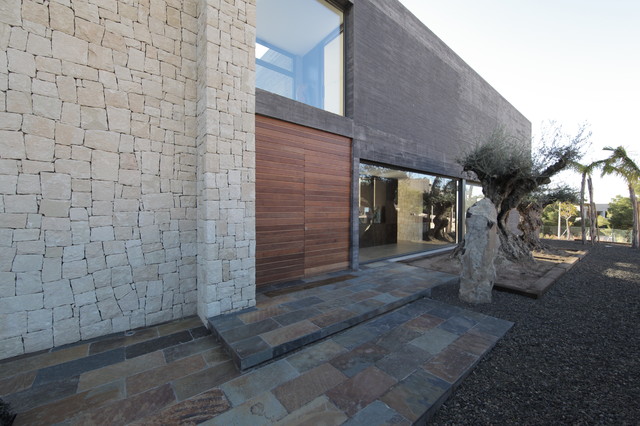 Fechada moderna, utilización de diferentes materiales: hormigón, piedra y la madera.