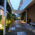 part of the wall protrudes out and you can give alternate lightings inside instead of having conventional ones. Your lights are safe inside and they would look great. Or you can simply buy solar lamps for cost reduction.