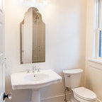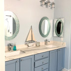 This acts as fill light. “In bathrooms with taller ceilings, a cove or cantilever details, ambient lighting fixtures can be installed along the perimeter of the space,” Whitehead says. “Architectural details such as these can hide the fixture and create indirect lighting.”
