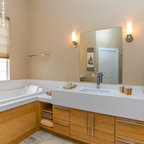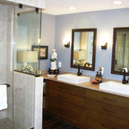 5. AsianThis style also works well in a bathroom. That’s because it draws on Eastern tradition and design to create a spa-like sanctuary almost by default. The soft lighting, abundant wood and requisite soaking tub set a relaxing tone from the start.